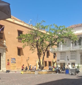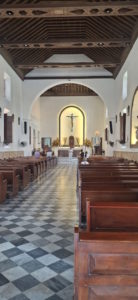 Wij wandelen door het Centro Histórico (Walled City) en lopen langs felgekleurde huizen met de overhangende houten balkons, ramen met houten bewerkte tralies er voor waar de klimplanten met mooie bloemen de muren versieren. Je kunt duidelijk de Spaanse invloeden hier terugvinden, mooie gevels en pleinen met witte huizen met de houten balkonnetjes. Een kerkje met gigantische houten deuren, waar je even kunt genieten van de rust. Helaas is het niet zo koel als je zou verwachten in deze kerk.